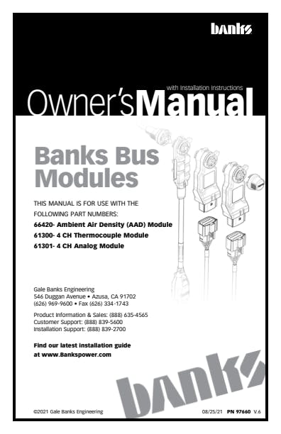 Connects to your iDash to add 4 Sensor inputs per module. Works with a wide variety of Banks plug and play sensors as well as with your custom analog or resistance sensor. Each channel can be configured to any parameter. The 4-Ch Analog Module Connects to your iDash and add 4 Sensor inputs per module. The system works with a wide variety of Banks plug and play sensors as well as with your custom analog or resistance sensor. Each channel can be configured to any parameter making this a very flexible module. Daisy chain up to 6 Thermocouple Modules and 6 Analog Sensor Modules per system allowing you to add over 48 new sensors to your Banks iDash DataMonster or SuperGauge. Key Features: The 4-Ch Analog Module. Connects to your iDash. Adds 4 Sensor inputs per module. The system works with a wide variety of Banks plug-and-play sensors. Also works with your custom analog or resistance sensor. Each channel can be configured to any parameter making this a very flexible module. Combine with other Banks Sensor Modules to use additional sensors. Daisy chain up to 6 Thermocouple and 6 Analog Sensor Modules per system. Connects inline with Banks Derringer, and other Sensor Modules for easy connectivity.