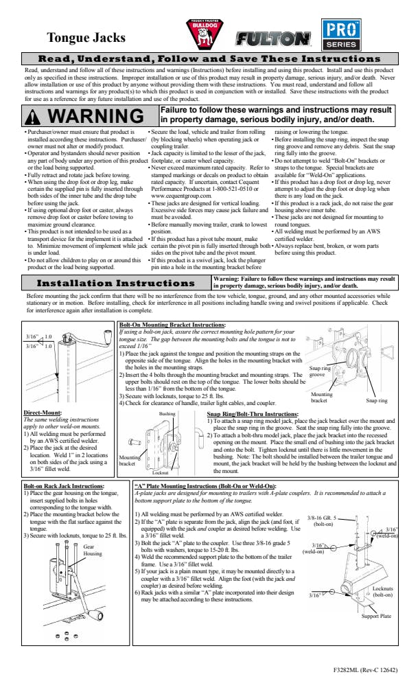 BULLDOG round jacks are recognized as the industry standard by leading agricultrual, commercial, horse, livestock, and other trailer manufacturers. For more than three quarters of a centruy, BULLDOG jacks have been demonstrated to be the most reliable, field-proven jacks on the market. Smooth, comfortable, ergonomic designDependable vertical and side load capacityProven reliability for long term use at rated loadsPrecision fitted parts for extra stabilityA-Frame models listed have grey painted outer and inner tubes - All other models have grey painted outer and clear zinc inner tubesCustom finishes are available upon request