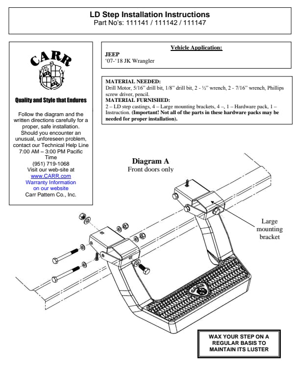 The LD step was Actually inspired by Jeff Carr's wife, Lynn. Hence the name "LD STEP" (Lynn's Design"). This Step will give the user easier access to the vehicle due to the wider and deeper stepping surface which extends further than our other steps. The LD Step in available in three durable finishes, and installation is a cinch with our mounting system.