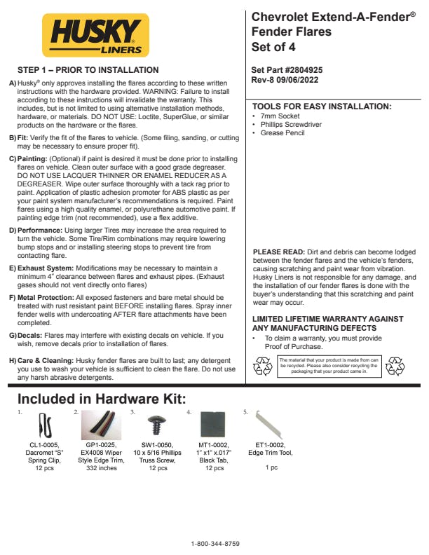 - Extend-A-Fender(R) Flares are covered by Husky Liners Limited Lifetime Warranty, featuring Husky's legendary durability, so they're built to last. Proudly made in the USA with global materials.