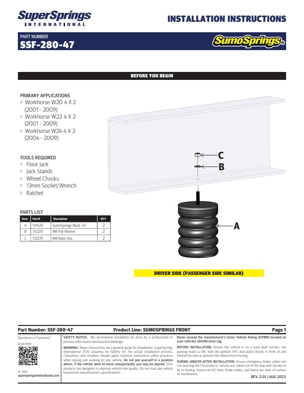 SumoSprings Front for Workhorse W20/W22/W24.