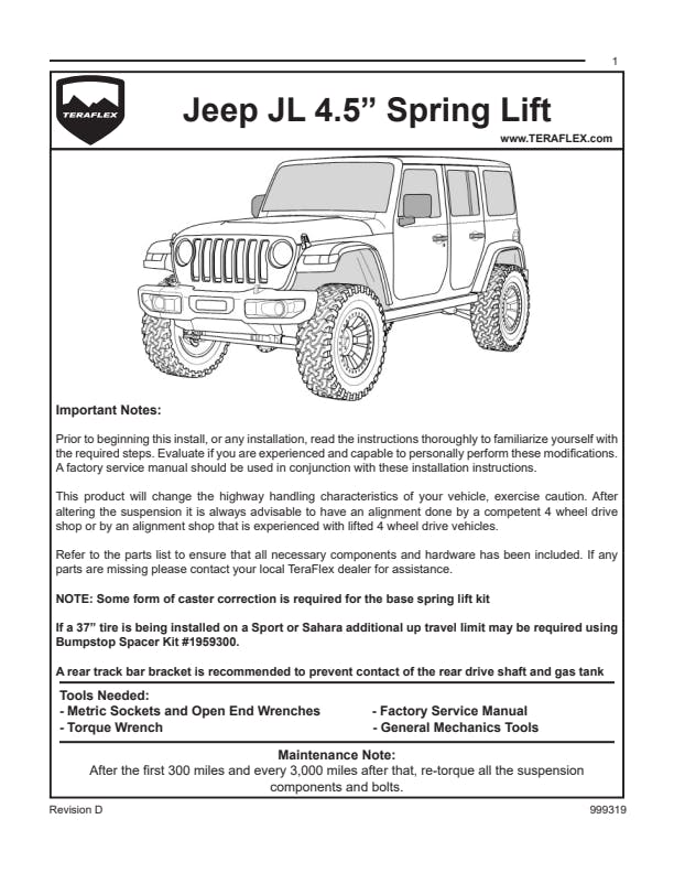 4.5 in. Lift Coil Spring Kits (JL4 Front: # 1864400 & JL4 Rear: # 1864300), Alpine IR Long Control Arm & Bracket Kit - 8-Arm (3-6" Lift) (# 1310512), HD Forged Adjustable Front Track Bar (0-6" Lift) (# 1753420), Front Track Bar Bracket (4.5 in. Lift) (# 1953500), Rear Track Bar Bracket (2.5-4.5 in. Lift) (# 1953600), SpeedBump & Progressive Bump Stop Kit - Front & Rear (0-4.5 in. Lift) (# 1958350), 2" Bump Stop Strike Pad Extension Kit - Front & Rear (# 1959500), 0.5 in. Bump Stop Strike Pad Shim Kit - Front & Rear (# 1959300), Front Sway Quick Disconnect Kit (0-4.5 in. Lift) (# 1764000), 11.5 in. Rear Sway Bar Link Kit w/ Swivel Stud (# 1764300), Front Brake Line Anchor Kit (# 1101255), All necessary hardware, And more |